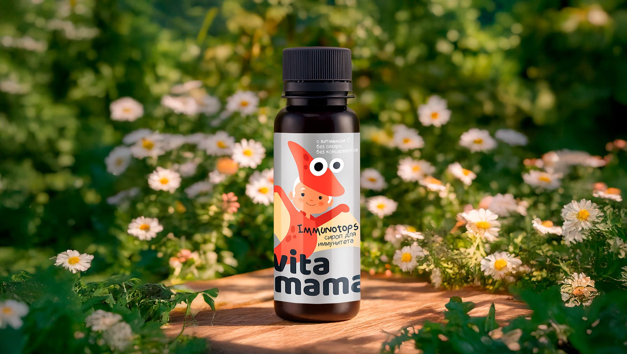 Қонцентратталған алма шырыны, концентратталған шие шырыны, инулин шәрбаты, түймедақ сығындысы, жебіршөп сығындысы, итмұрын сығындысы, аскорбин қышқылы, таңқурай сығындысы, жолжелкен сығындысы.
