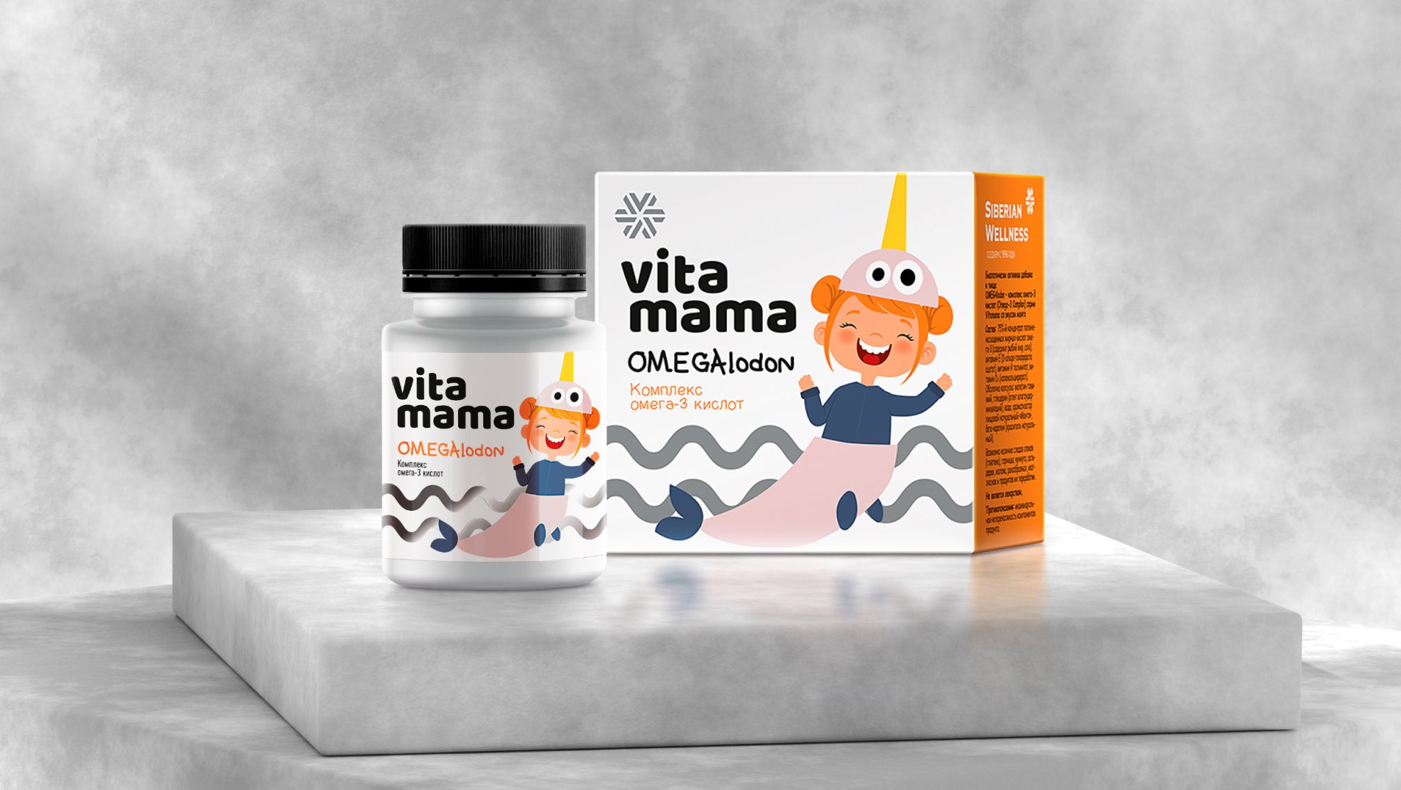 Омега-3 полиқаныққан май қышқылдарының концентраты (балық майы, тотықсыздандырғыш: сояның токоферолдар қоспасы), Е дәрумені (dl-альфа-токоферол ацетаты), А дәрумені (ретинол пальмитаты), D3 дәрумені (холекальциферол). Капсула қабығы: сиыр еті желатині, глицерин (ылғалдандырғыш), су, ваниль сығындысы.