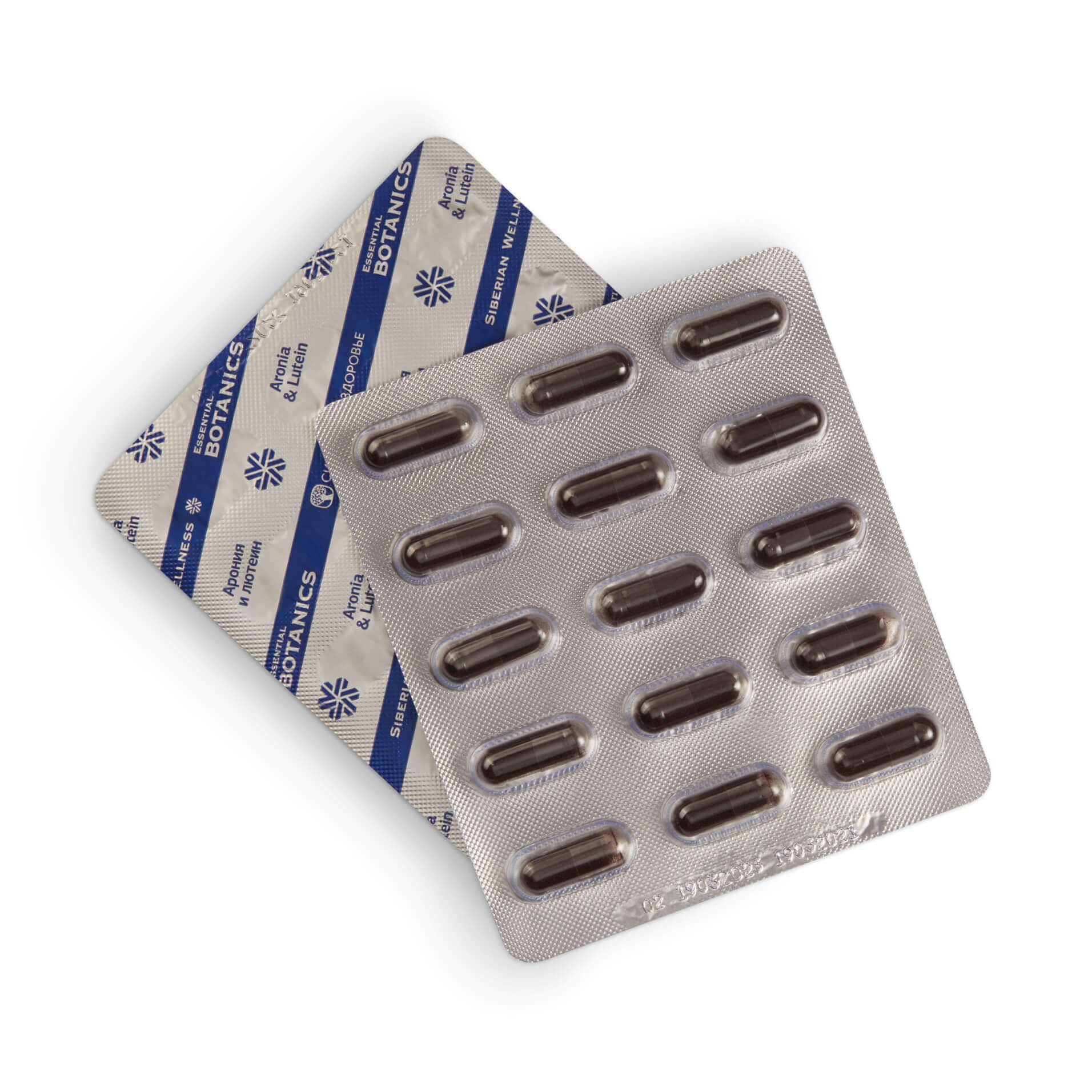 Порошок из рябины черноплодной (аронии), экстракт черники, лютеин. Оболочка капсулы из говяжьего желатина.