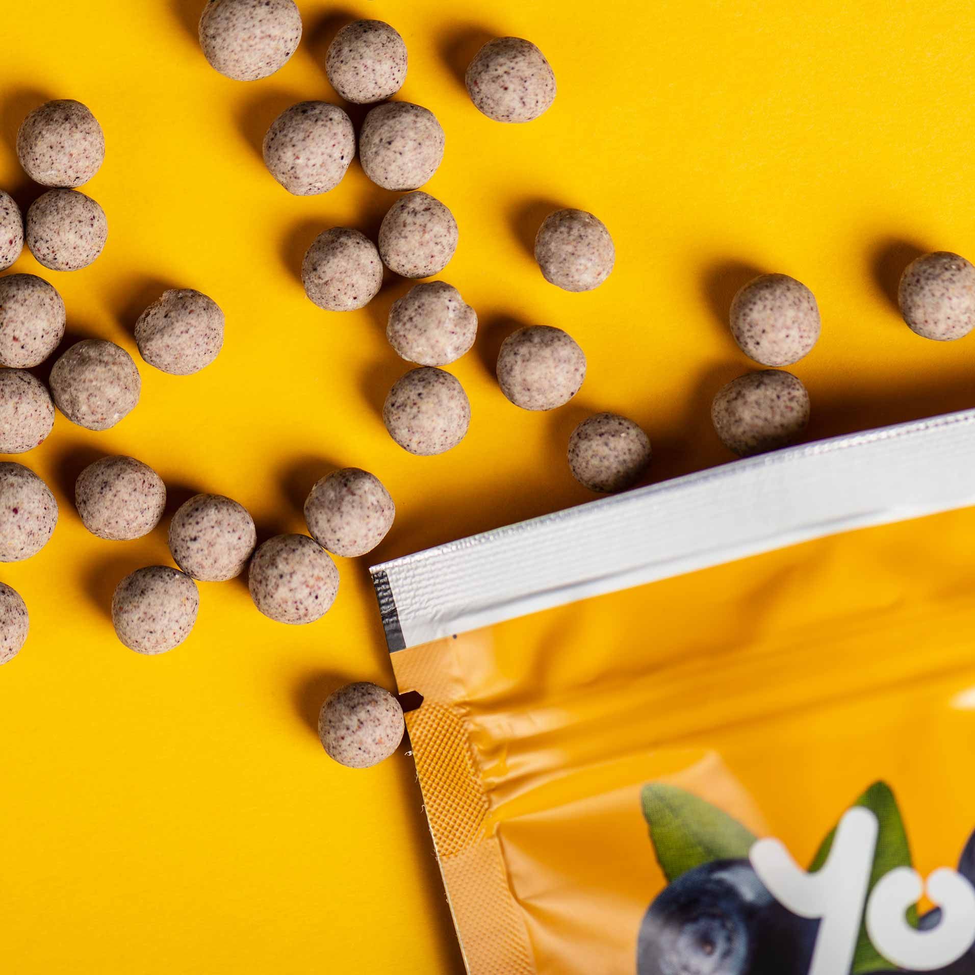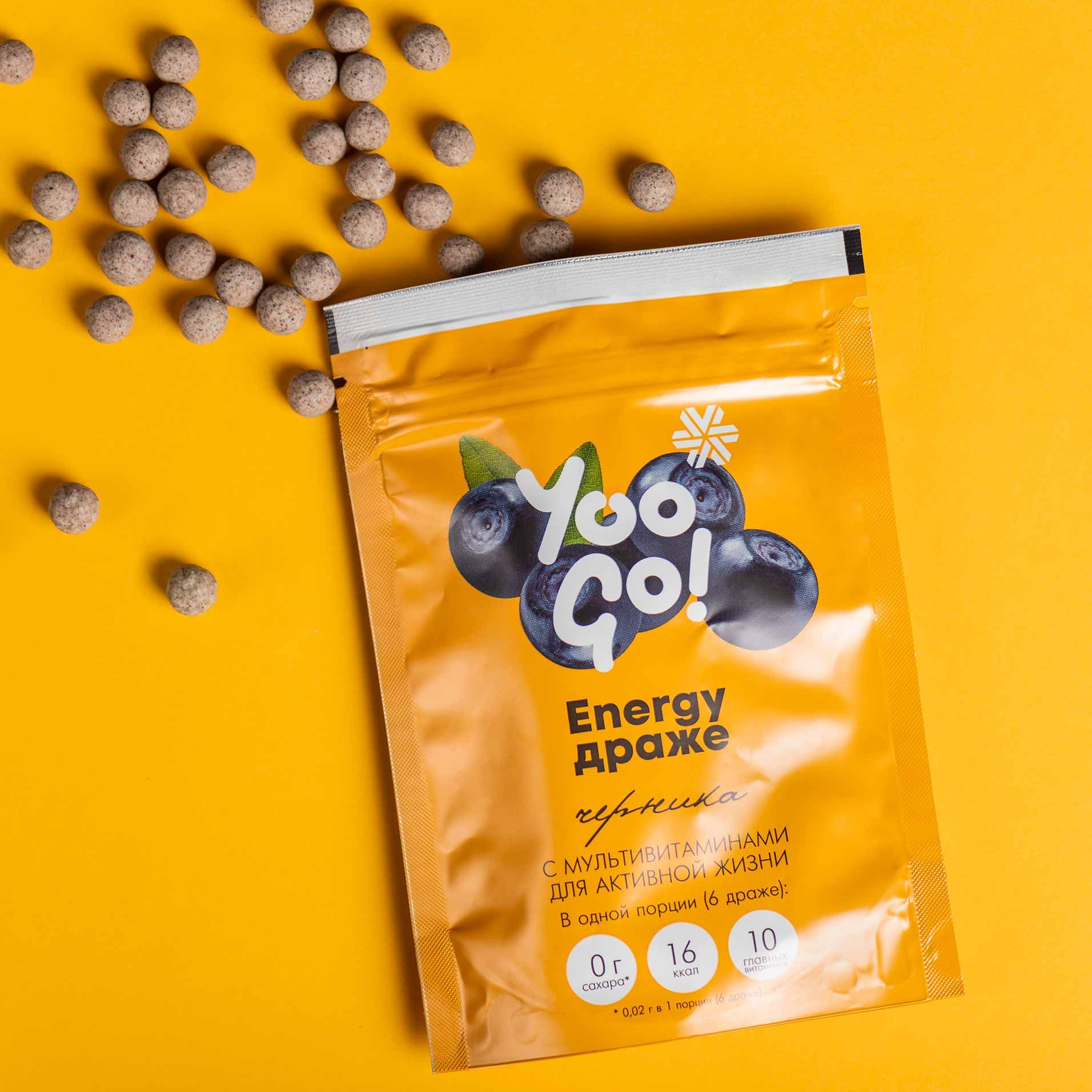 Хрустящее драже Yoo Go – это яркое черничное лакомство, которое понравится и детям, и взрослым. Внутри – только правильные калории: настоящие сибирские отруби и сушеные ягоды, обеспечивающие организм медленными углеводами и клетчаткой для лучшего пищеварения.