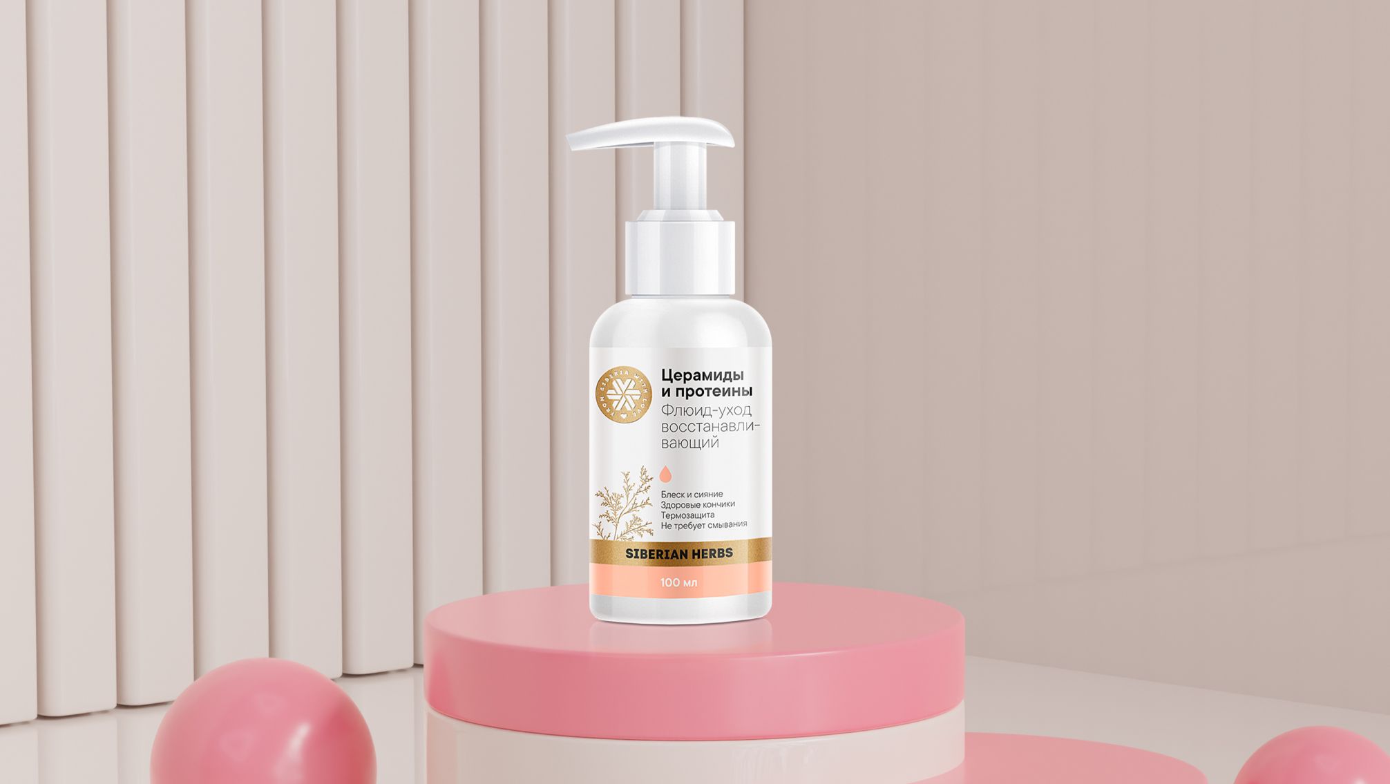 Активные компоненты: церамиды, протеины пшеницы, фитокератин, арабиногалактан, экстракты и гидролат сибирских растений.
