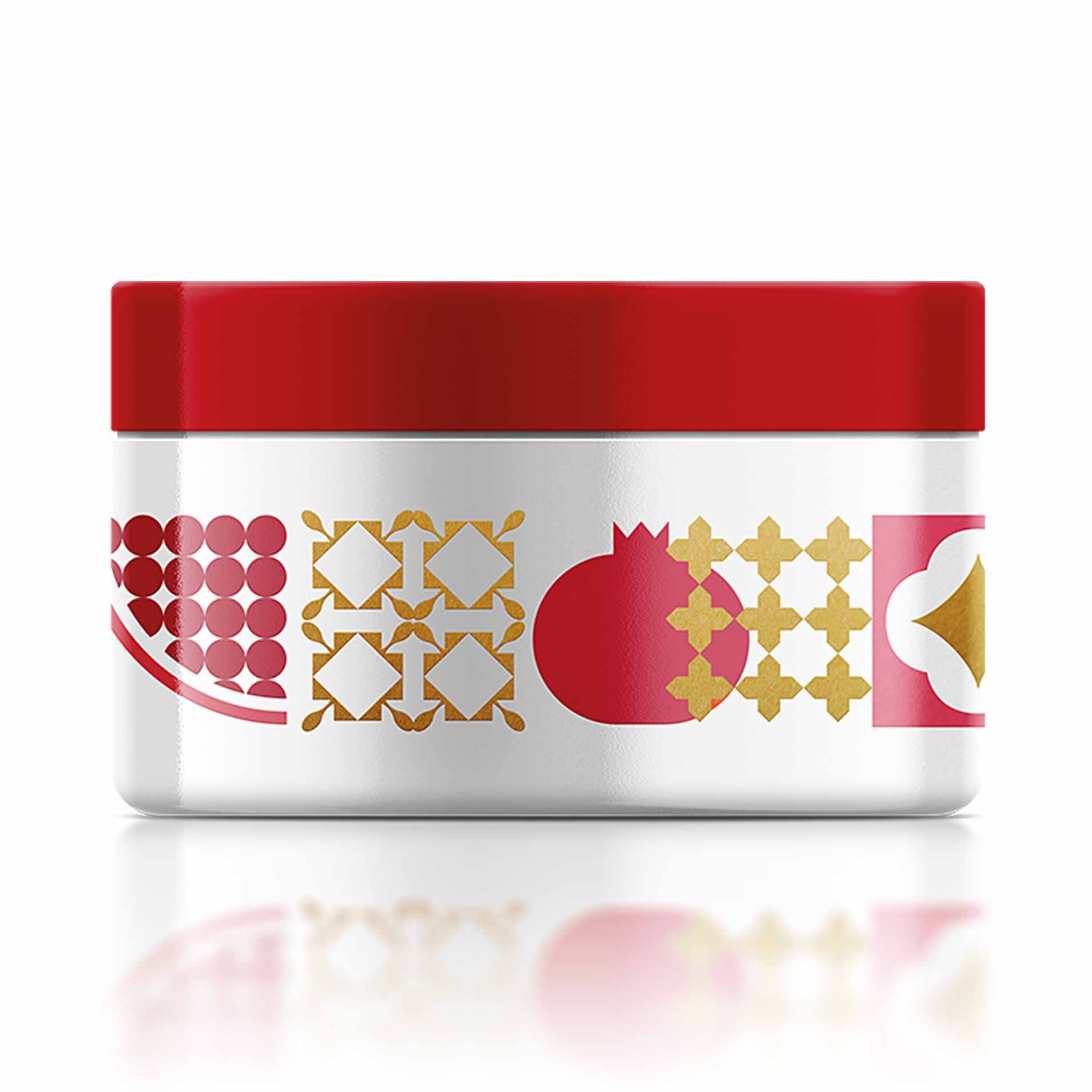 Соль морская, малина, масла кокоса, ши, виноградных косточек, миндальное, соки инжира, винограда, вишни, граната.