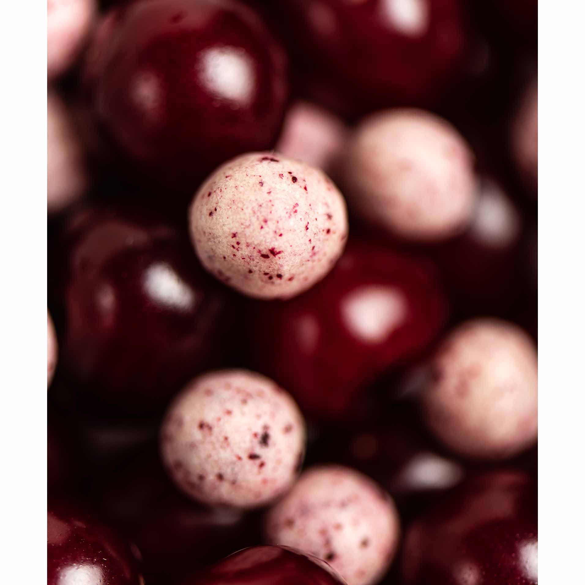 Какао-масло, фруктоолигосахариды, молоко сухое, изомальтулоза, отруби хрустящие с инулином (мука ржаная, отруби пшеничные пищевые, инулин), порошок из сушеных ягод черники, малины, клубники, ежевики и бузины (ягодная смесь), глянцеватель «Квик-шайн», аскорбат натрия, ароматизатор пищевой натуральный «Вишня».