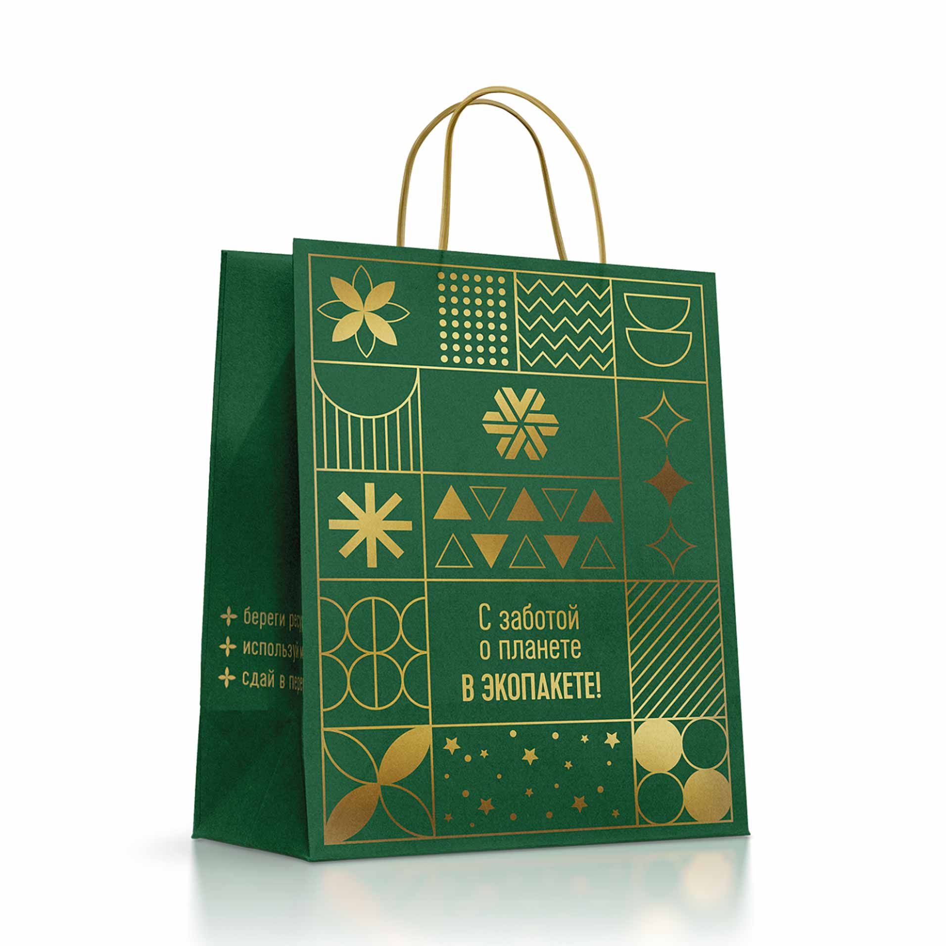 Порадуйте близких поздравлением от Siberian Wellness! Стильный крафтовый пакет в новогоднем дизайне отлично дополнит любой подарок и создаст праздничное настроение. Создан из натуральных и на 100% перерабатываемых материалов.