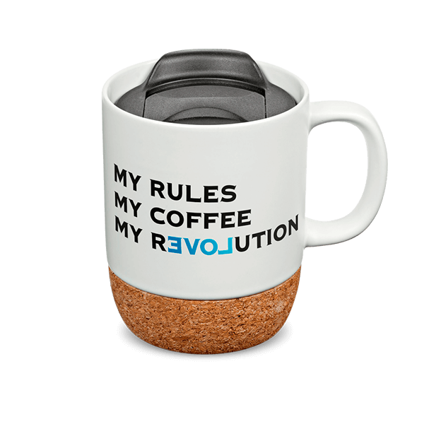 Яркая кружка с брендированием 25-летия Компании и слоганом My rules, my coffee, my revolution может стать памятным подарком для близкого человека или для себя. Благодаря подставке из пробки кружка надежна и позволит наслаждаться любимым горячим напитком с комфортом дома и в офисе.