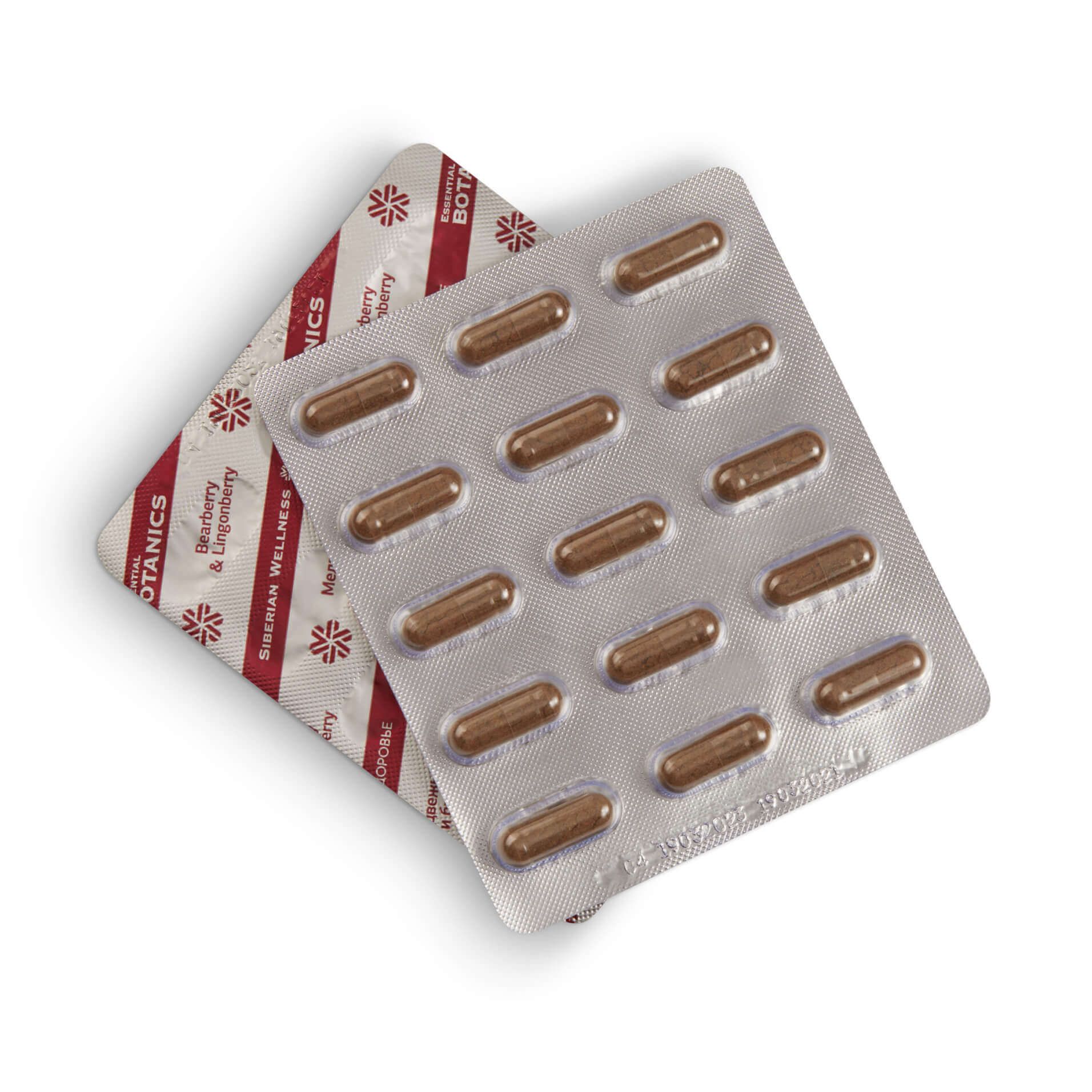 Экстракт листьев толокнянки, листья брусники (порошок), плоды клюквы (порошок), экстракт корня хрена.