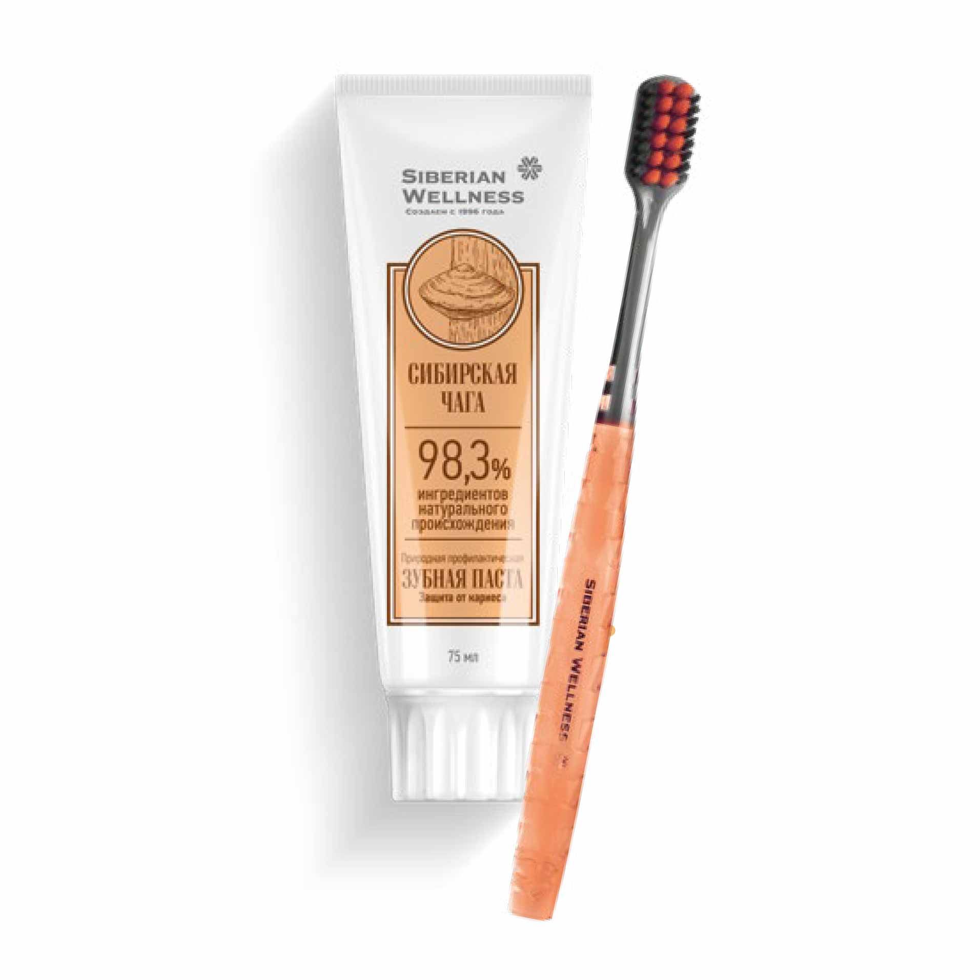 Зубные пастыНатуральная забота и защита полости рта: сила чаги укрепляет десны и помогает в профилактике кариеса, а мягкая зубная щетка обеспечивает тщательный и бережный уход.