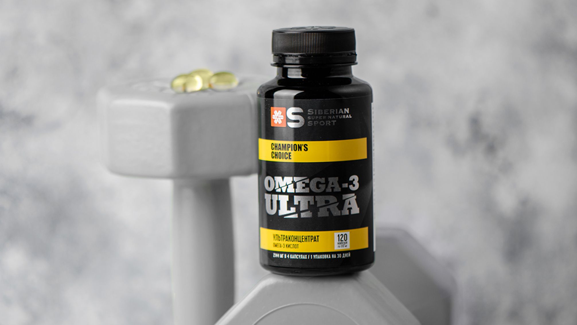 Ультраконцентрат омега-3 полиненасыщенных жирных кислот глубоководных морских рыб (концентрат этиловых эфиров рыбьего жира, смесь токоферолов – антиокислитель), витамин Е (dl-альфа-токоферола ацетат). Оболочка капсулы: желатин говяжий, глицерин (агент влагоудерживающий), вода, сорбитовый сироп (агент влагоудерживающий), ароматизатор пищевой «Этилванилин».