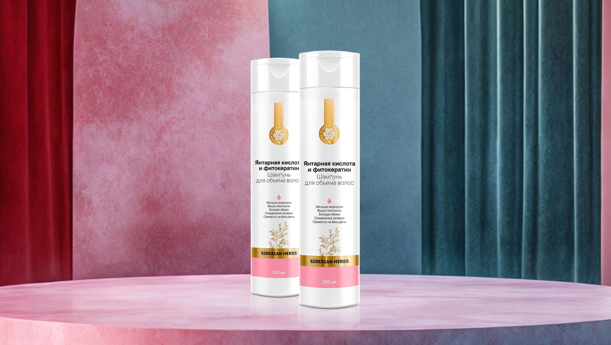 Активные компоненты: янтарная кислота, растительный кератин из риса и семян конопли, аминокислоты, бетаин, арабиногалактан, экстракты шалфея, тимьяна, клевера и другие экстракты сибирских растений.