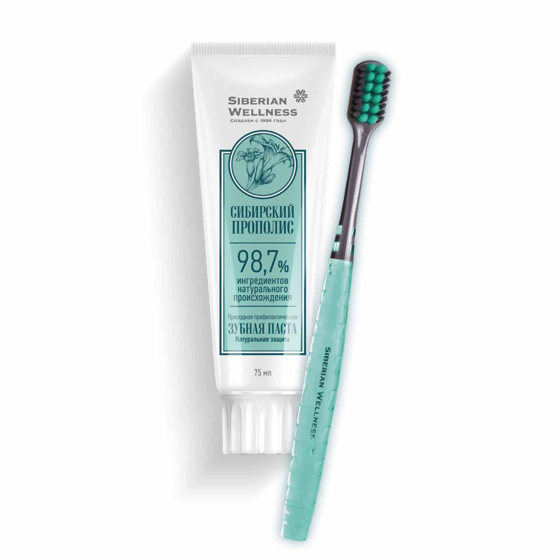 Натуральная забота и защита полости рта: сила прополиса укрепляет десны и помогает в профилактике кариеса, а мягкая зубная щетка обеспечивает тщательный и бережный уход.