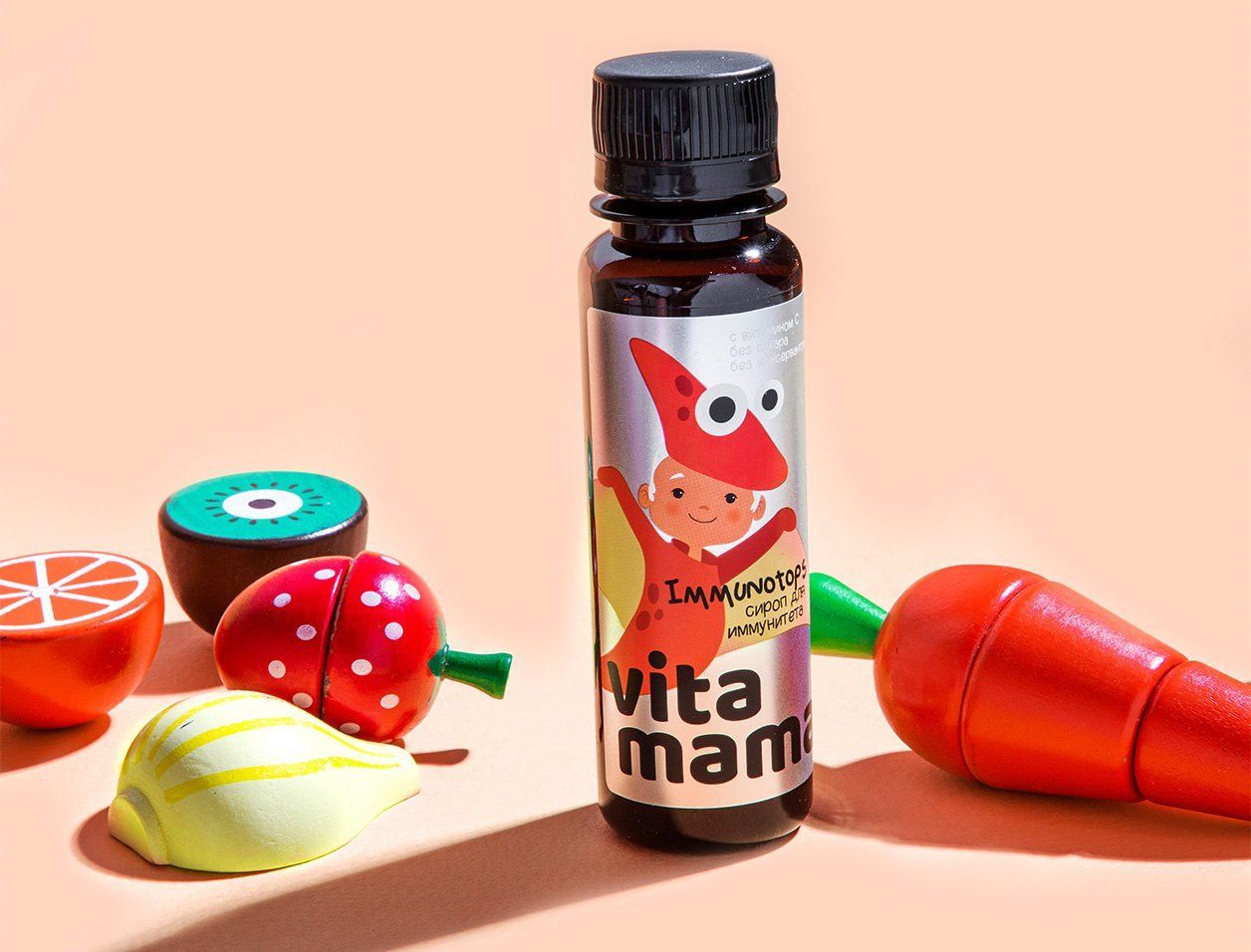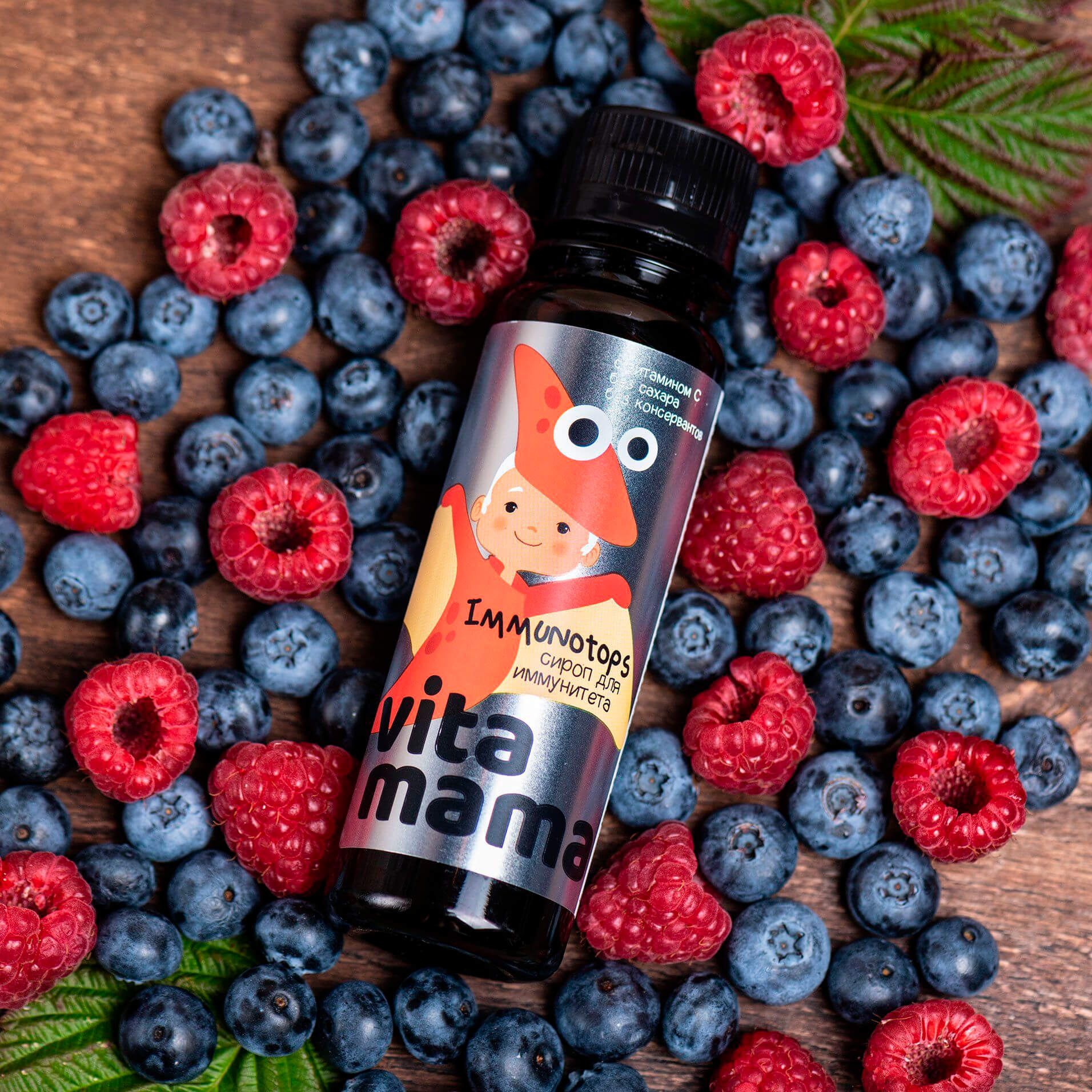 Сок яблочный концентрированный, сок вишневый концентрированный, сироп фруктоолигосахаридов, экстракт ромашки, экстракт чабреца, экстракт шиповника, аскорбиновая кислота, экстракт малины, экстракт подорожника.