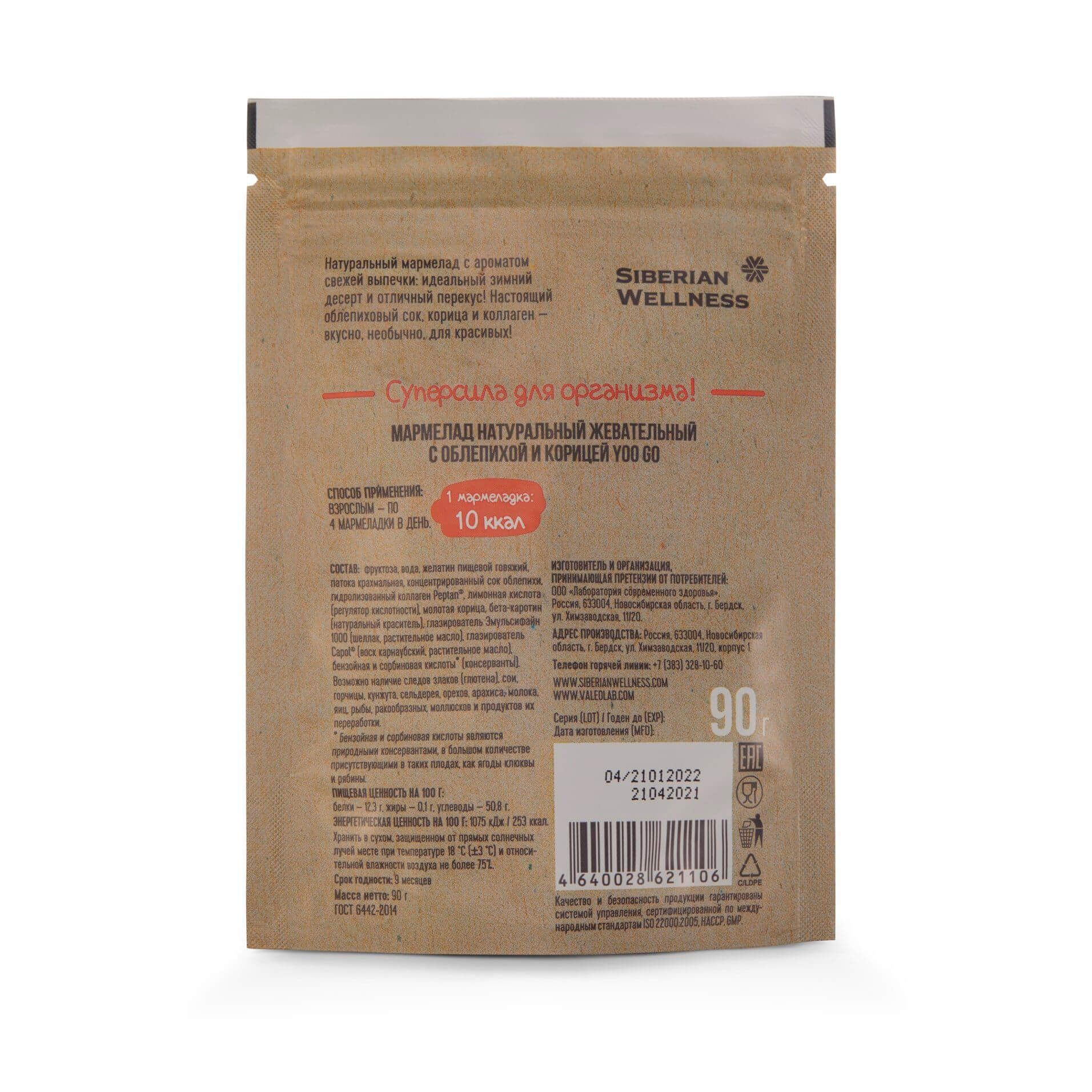 Фруктоза, вода, желатин пищевой говяжий, патока крахмальная, концентрированный сок облепихи, гидролизованный коллаген Peptan®, лимонная кислота (регулятор кислотности), молотая корица, бета-каротин (натуральный краситель), глазирователь Эмульсифайн 1000 (шеллак, растительное масло), глазирователь Capol® (воск карнаубский, растительное масло), бензойная и сорбиновая кислоты* (консерванты).